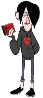 Es un adolescente de 17 años con un estilo gótico: su larga cabellera cubre
